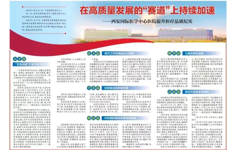 編者按:今日,《陜西日報》A8版刊登了醫(yī)院提升醫(yī)療品質(zhì)紀(jì)實(shí)的長篇報道,從人才、技術(shù)、制度、學(xué)術(shù)、服務(wù)、公益等方面,全方位展示了醫(yī)院兩年來的發(fā)展進(jìn)程。