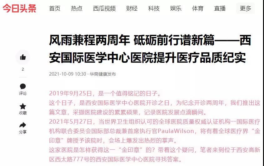 今日《華商報(bào)》A8版用整版的篇幅刊登了《風(fēng)雨兼程兩周年 砥礪前行譜新篇——西安國(guó)際醫(yī)學(xué)中心醫(yī)院提升醫(yī)療品質(zhì)紀(jì)實(shí)》。華商報(bào)以圖文并茂的形式記錄了醫(yī)院建設(shè)的點(diǎn)滴瞬間,全方位、多角度報(bào)道了醫(yī)院兩年來(lái)的發(fā)展碩果。