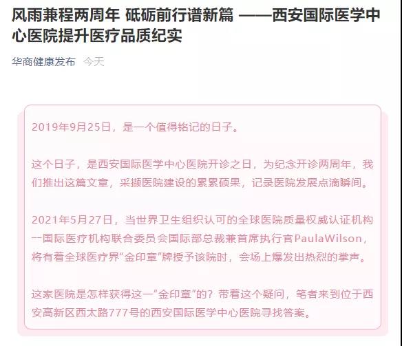 2019年9月25日,是一個(gè)值得銘記的日子。這個(gè)日子,是醫(yī)院開(kāi)診之日。兩年來(lái),西安國(guó)際醫(yī)學(xué)中心醫(yī)院獲得了社會(huì)公眾及媒體的高度關(guān)注。