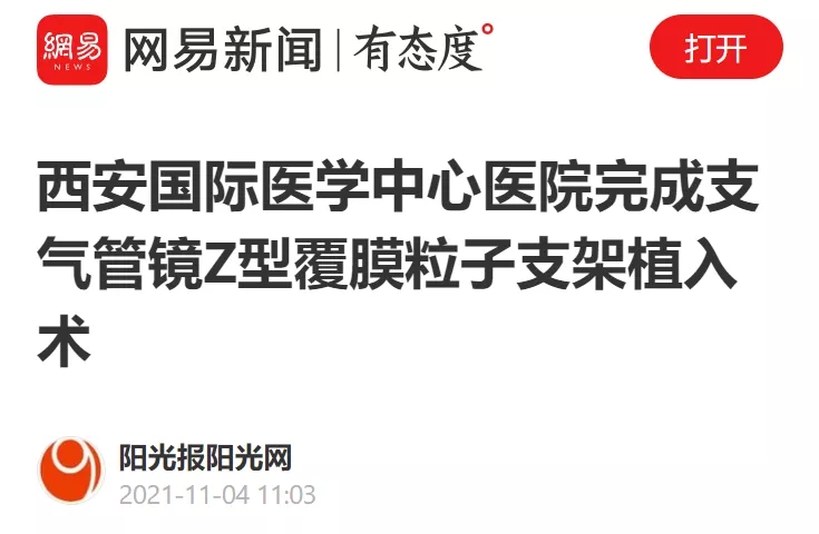[老年健康?醫(yī)視界]西安國際醫(yī)學(xué)中心醫(yī)院完成經(jīng)支氣管鏡Z型覆膜粒子支架植入術(shù)