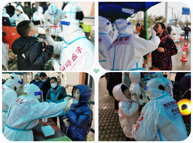 12 月 25 日,西安國際醫(yī)學(xué)中心醫(yī)院派出 252 名醫(yī)護(hù)人員,奔赴西安市高新區(qū)各個(gè)核酸采集點(diǎn),開展核酸檢測(cè)工作。
