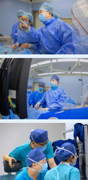打通心路,解開(kāi)心結(jié)。高風(fēng)險(xiǎn)、高難度的冠心病手術(shù)正是李偉杰擅長(zhǎng)的領(lǐng)域。正向?qū)Ыz不能通過(guò)閉塞的血管,那就采取逆向開(kāi)通血管,推送逆向?qū)Ыz到血管真腔,正向?qū)Ыz“接應(yīng)”,交換為超長(zhǎng)導(dǎo)絲建立軌道,沿超長(zhǎng)導(dǎo)絲軌道將帶有支架的球囊穿行在心臟的江河湖海,抵達(dá)目的地——右冠遠(yuǎn)端狹窄的血管段,充液后的球囊擴(kuò)張撐開(kāi)狹窄的血管,隨后收縮球囊使支架留在血管內(nèi),第一枚支架放置完畢。因?yàn)橛执钟执蟮挠夜跔顒?dòng)脈全程彌漫狹窄病變,由遠(yuǎn)端向近段一次植入支架,隨著最后一枚支架釋放,球囊撤出,王先生的血流瞬間通暢,冠狀動(dòng)脈造影術(shù) 經(jīng)皮冠狀動(dòng)脈內(nèi)支架置入術(shù)很成功。