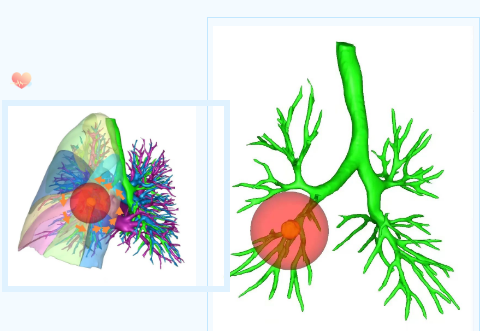 據(jù)王武平主任介紹,胸外科團(tuán)隊(duì)目前已常規(guī)開展不同部位肺小結(jié)節(jié)的聯(lián)合肺亞段切除術(shù),為肺小結(jié)節(jié)患者提供個(gè)體化的治療。術(shù)前進(jìn)行三維重建,以磨玻璃結(jié)節(jié)為中心,勾勒出病灶周圍2cm切緣球,規(guī)劃切除范圍和路徑,保證足夠切緣,實(shí)現(xiàn)肺結(jié)節(jié)的精準(zhǔn)切除和患者快速康復(fù),該技術(shù)既能實(shí)現(xiàn)肺結(jié)節(jié)的切除治愈,又能最大程度保留患者的肺功能,是目前針對早期肺磨玻璃結(jié)節(jié)肺癌較先進(jìn)的外科診療技術(shù)。