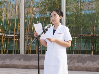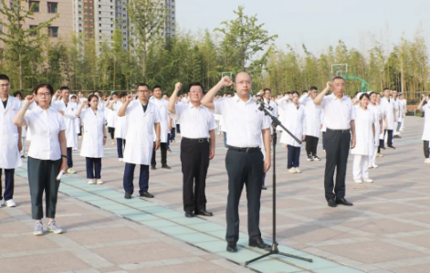 最后,付強副院長帶領(lǐng)全體新員工舉起右手,莊嚴(yán)宣誓:“我們是天的使者,以救死扶傷為天職.......”,鏗鏘有力的誓言在萬人廣場久久回蕩。