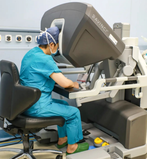 王海琳教授在達(dá)芬奇機(jī)器人輔助下開(kāi)展手術(shù),借助高清攝像頭和三維影像成像系統(tǒng),頭發(fā)絲細(xì)的血管清晰可見(jiàn),子宮及附件已被腫瘤層層包圍。在540度的空間下,可完全模仿人手腕動(dòng)作的3只機(jī)械臂靈活運(yùn)行著,約15*16cm的腫瘤深入盆底,與膀胱、宮旁界限不清,右側(cè)子宮血管迂曲,與右輸尿管黏連,王海琳教授完整切除子宮、右側(cè)附件、左側(cè)輸卵管及宮頸部腫瘤,也去除了因激素引起腫瘤復(fù)發(fā)的隱患。