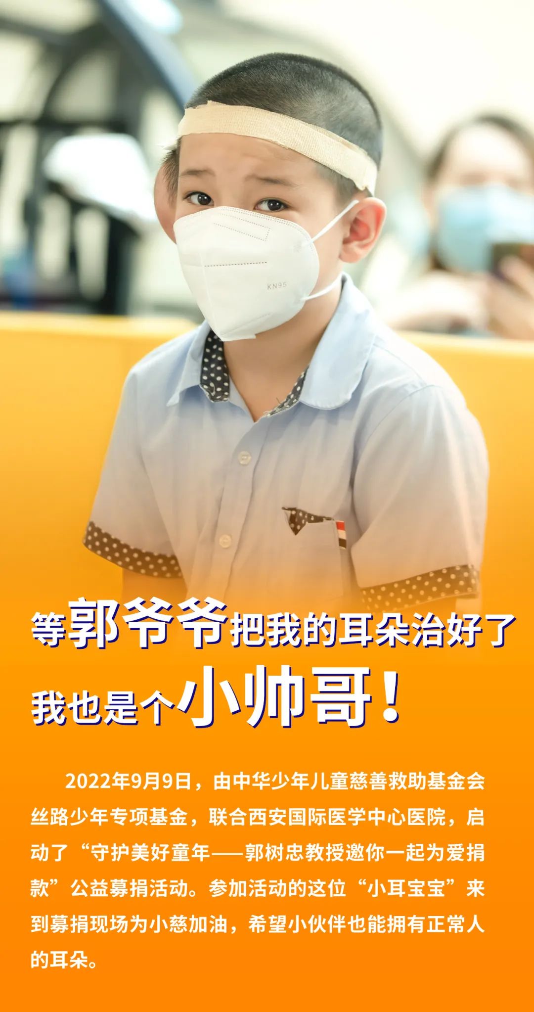 為了使更多“先天重疾兒童”恢復(fù)健康、快樂成長,9月9日,由中華少年兒童慈善救助基金會(huì)絲路少年專項(xiàng)基金,聯(lián)合西安國際醫(yī)學(xué)中心醫(yī)院,全面啟動(dòng)了“守護(hù)美好童年——郭樹忠教授邀你一起為愛捐款”公益募捐活動(dòng)。