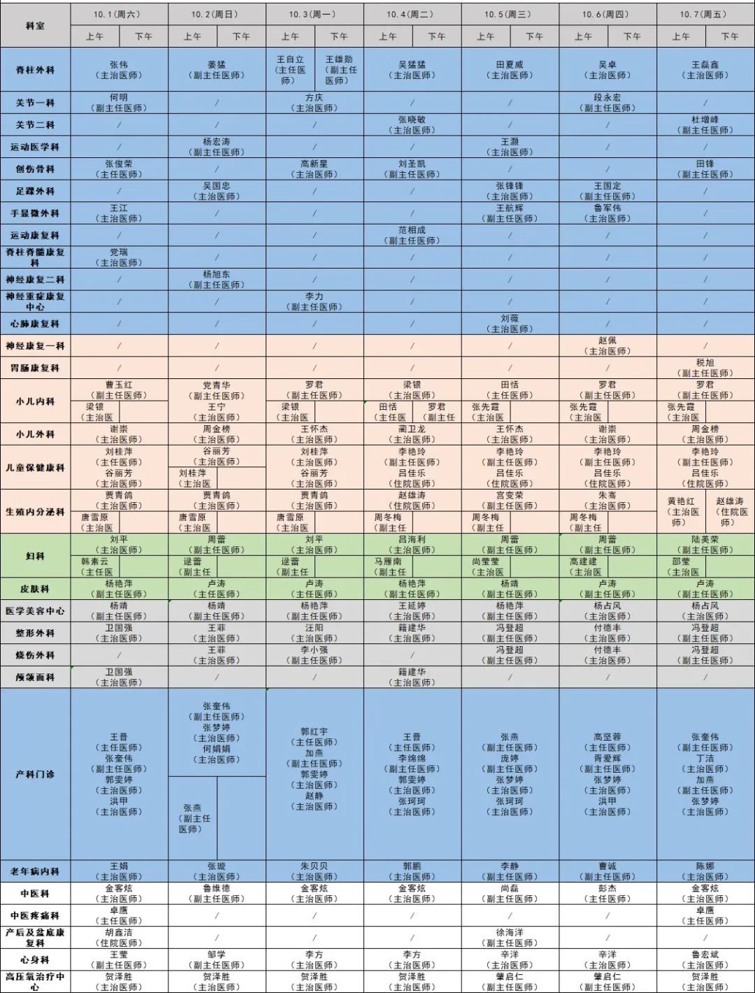 西安國際醫(yī)學(xué)中心醫(yī)院北院區(qū)門診出診表