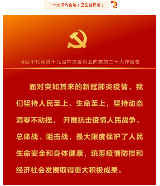 十載成就鼓舞人心,宏偉藍(lán)圖催人奮進(jìn)。西安國(guó)際醫(yī)學(xué)中心醫(yī)院黨委將把學(xué)習(xí)宣傳貫徹黨的二十大精神作為頭等大事,把思想和行動(dòng)迅速統(tǒng)一到黨的二十大精神上來(lái),深刻領(lǐng)會(huì)二十大報(bào)告中提出的新思想、新觀點(diǎn)、新目標(biāo)、新舉措,在新征程上,西安國(guó)際醫(yī)學(xué)中心醫(yī)院全體黨員、群眾將把學(xué)習(xí)宣傳貫徹黨的二十大精神與學(xué)習(xí)貫徹習(xí)近平總書(shū)記來(lái)陜考察重要講話重要指示精神和對(duì)衛(wèi)生健康工作的一系列重要指示批示精神相結(jié)合,踔厲奮發(fā)、勇毅前行、團(tuán)結(jié)奮斗,為推進(jìn)醫(yī)院高質(zhì)量發(fā)展和健康中國(guó)建設(shè)貢獻(xiàn)智慧和力量!