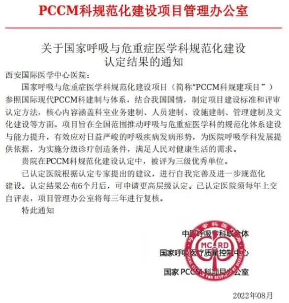 近日,國家呼吸與危重癥醫(yī)學科規(guī)范化建設項目管理辦公室發(fā)布新聞,西安國際醫(yī)學中心醫(yī)院獲國家呼吸與危重癥醫(yī)學科規(guī)范化建設三級醫(yī)院優(yōu)秀單位。據(jù)悉,這是省內(nèi)繼西京醫(yī)院、唐都醫(yī)院、交大一附院、交大二附院后,第五家獲此殊榮的單位,標志著該院呼吸與危重癥醫(yī)學科綜合實力躋身國家優(yōu)秀行列。