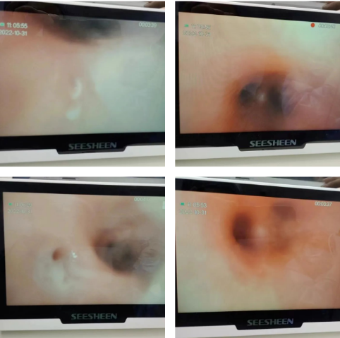 但胸部CT的結(jié)果表明小丸子的肺內(nèi)病變比較重,同時(shí)通氣也不均勻,確實(shí)存在堵塞,可這個(gè)"堵住氣管的東西”到底是什么,還得在支氣管鏡檢查下才能知道。在和小丸子的父母詳細(xì)溝通病情后,入院第二天一早,小兒內(nèi)科田恬主任便為其進(jìn)行了無痛電子支氣管鏡檢查。