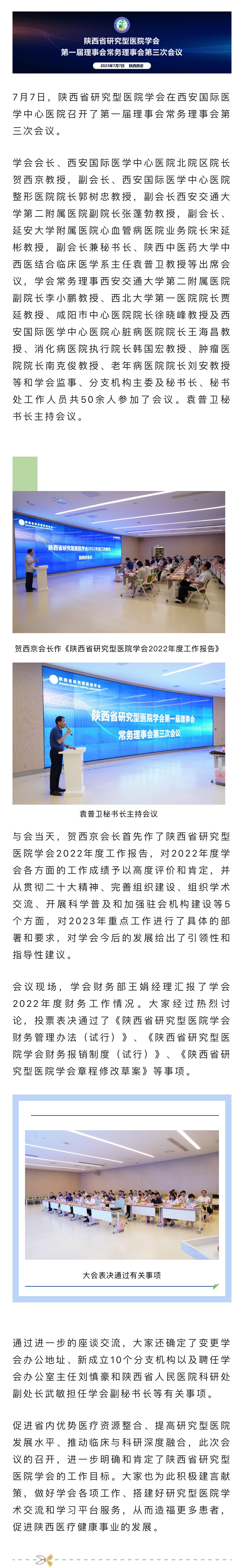 陜西省研究型醫(yī)院學(xué)會(huì)第一屆理事會(huì)第三次會(huì)議在我院召開