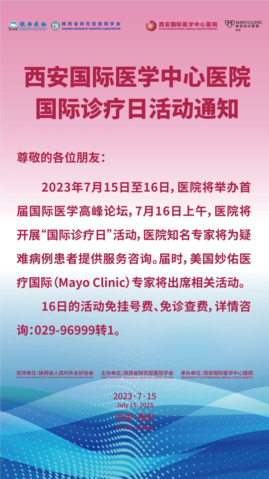 西安國(guó)際醫(yī)學(xué)中心醫(yī)院國(guó)際診療日活動(dòng)通知