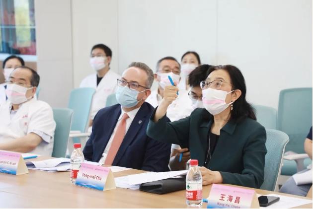 深化合作,共建高地。早晨,腫瘤醫(yī)院病例討論會上,Mayo Clinic專家Pooja Advani教授、腫瘤醫(yī)院南克俊院長等專家針對一例初診4期乳腺癌患者展開討論,并回答了有關長期骨改良藥物治療臨床實踐等問題。