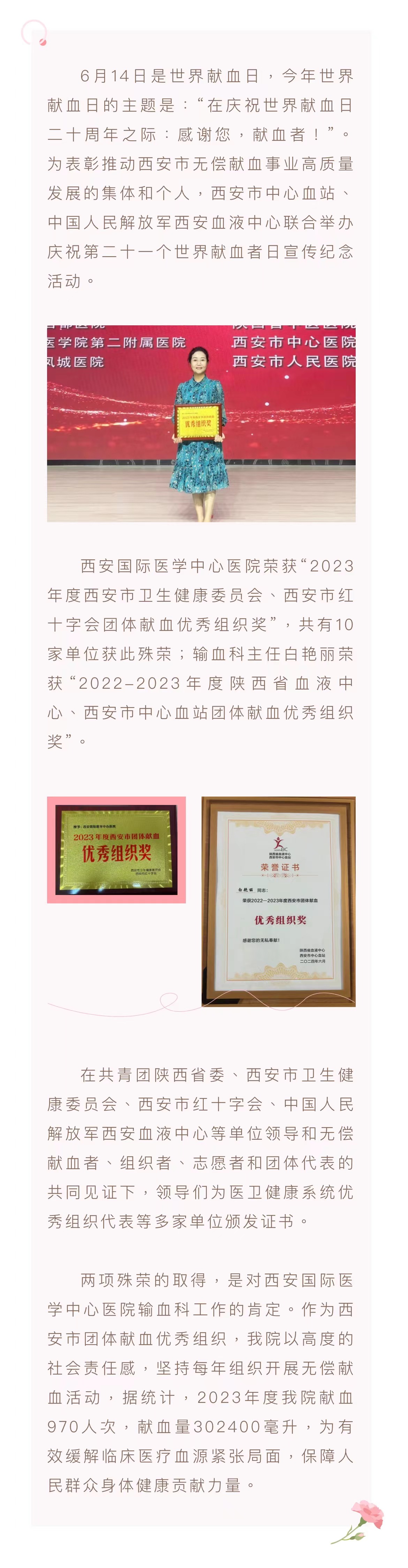 感謝您,獻(xiàn)血者!我院再獲兩項殊榮