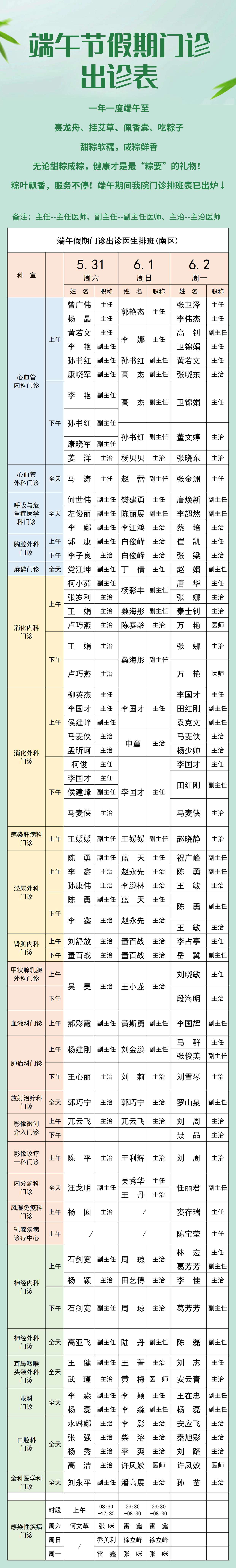 “粽”要提醒!端午節(jié)門診出診表出爐