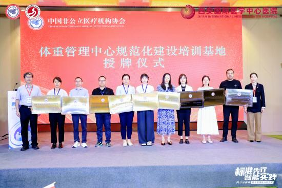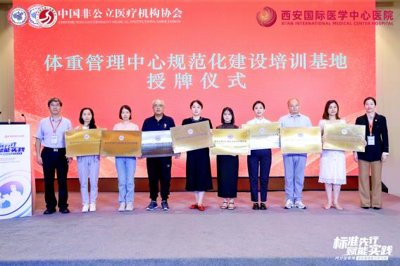 為破解這一困局,中國非公立醫(yī)療機(jī)構(gòu)協(xié)會(huì)積極推進(jìn)標(biāo)準(zhǔn)化與協(xié)同化建設(shè),經(jīng)嚴(yán)格評審,對40家機(jī)構(gòu)授予“體重管理中心規(guī)范化建設(shè)培訓(xùn)基地”稱號(hào),并為到場的35家機(jī)構(gòu)代表舉行授牌儀式。