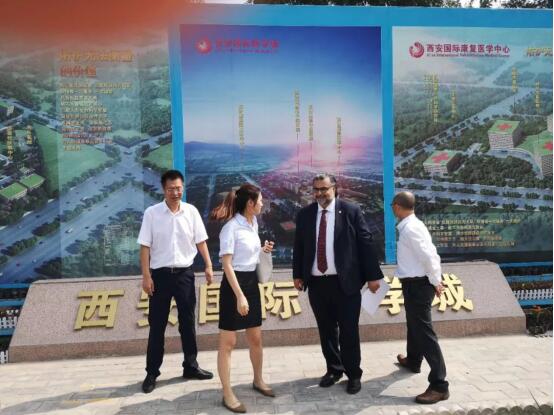 塔伊布-夏爾先生一行人在參觀西安國際醫(yī)學中心在建項目國際生殖醫(yī)學中心期間,孫文國副總裁向客人詳細介紹了國際醫(yī)學概況及公司發(fā)展戰(zhàn)略、建設國際醫(yī)學城的構想,強調隨著公司在醫(yī)療服務行業(yè)的深度發(fā)展,未來對醫(yī)護人才需求將持續(xù)加大,公司希望能與國際一流的院校及早展開合作,在學科建設、人才培養(yǎng)等方面為公司未來的健康運營做好充裕準備。