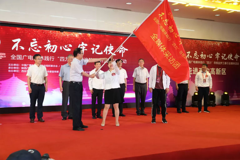不忘初心 牢記使命——慶祝新中國(guó)成立七十周年全國(guó)廣電媒體踐行‘四力’尋根追夢(mèng)三秦行”全媒體活動(dòng)由中國(guó)廣播電影電視社會(huì)組織聯(lián)合會(huì)、陜西省委宣傳部聯(lián)合主辦并于當(dāng)日上午在西安正式啟動(dòng)。
